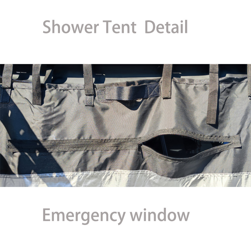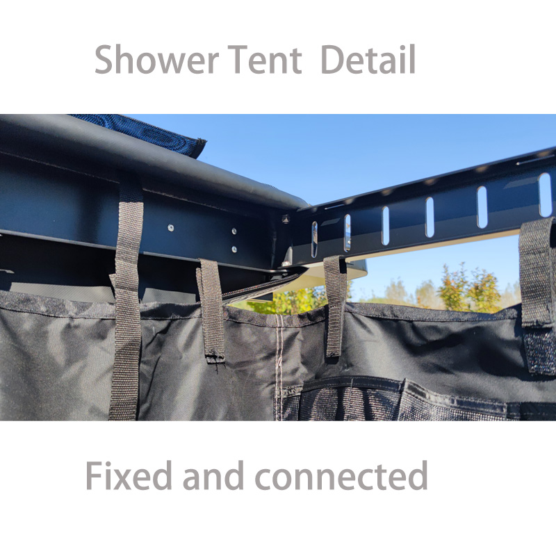 વધારાની ગોપનીયતા.ઓવરલેન્ડ વ્હીકલ સિસ્ટમ્સ નોમેડિક ક્વિક ડિપ્લોઇંગ માટે ઓવરલેન્ડ મુસાફરી અને કેમ્પિંગ માટે આદર્શફોલ્ડિંગ શાવર ટેન્ટબદલાતી વખતે અથવા સ્નાન કરતી વખતે તમને ગોપનીયતા પ્રદાન કરશે.શાવર રૂમ ઓછા વજનનો, અનુકૂળ અને સેટ કરવા માટે સરળ છે.તે પૂરા પાડવામાં આવેલ L કૌંસ અને માઉન્ટિંગ સ્ટેનલેસ સ્ટીલ હાર્ડવેર સાથે પરંપરાગત ચંદરવોની જેમ તમારા વાહનોની છતની રેક પર સરળતાથી માઉન્ટ થાય છે.